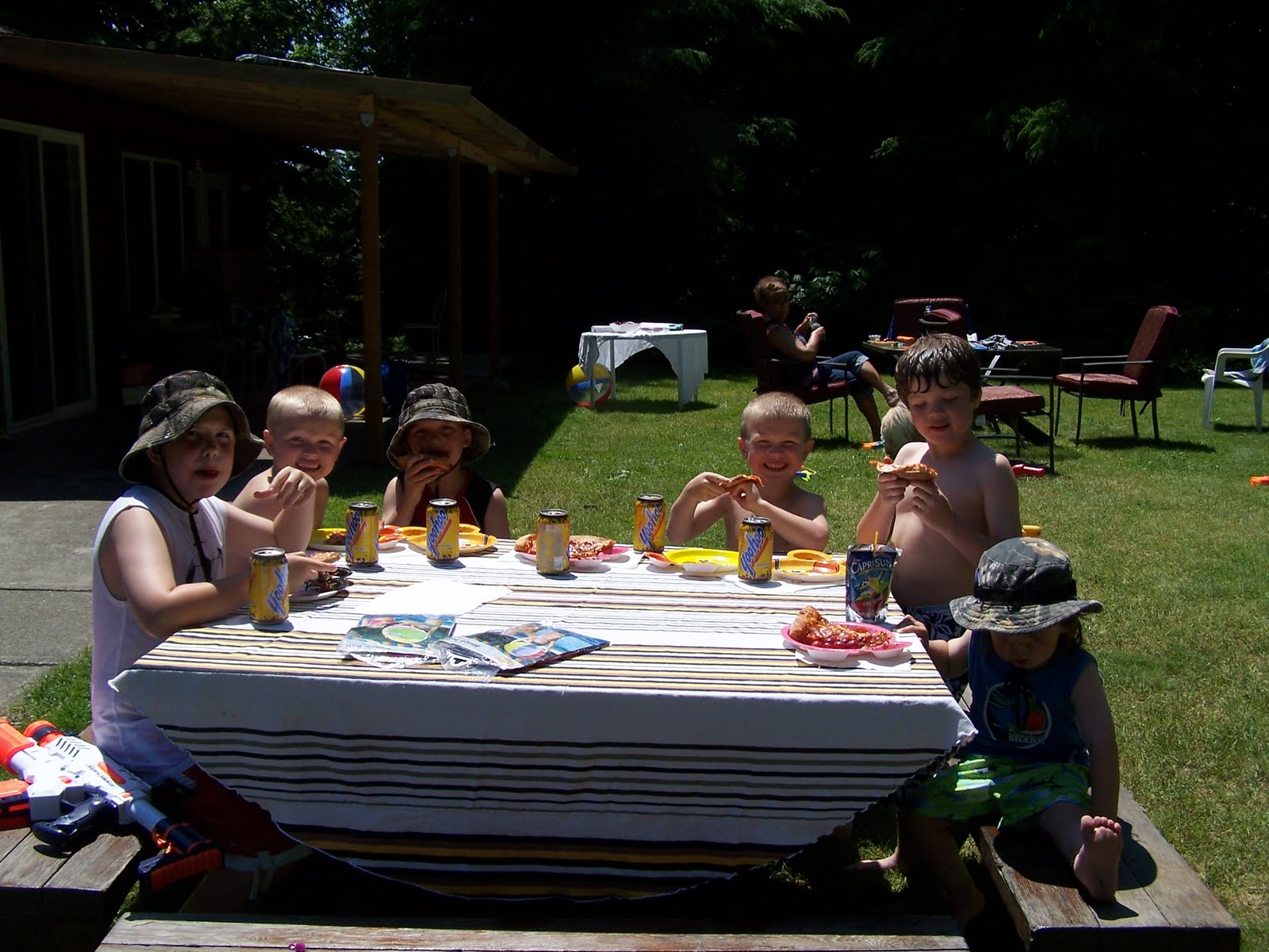 Lunch time at Grandma's!!! Who wants pizza!?! I think Lee shocked her...he kept eating...and eating. He was the last one...but he ate it all. Food wise this summer is tough...they are eating at least 2 sandwiches at lunch and I swear a box of cereal at breakfast...must be because they boycott dinner...either way they are eating me out of my house!!![]()